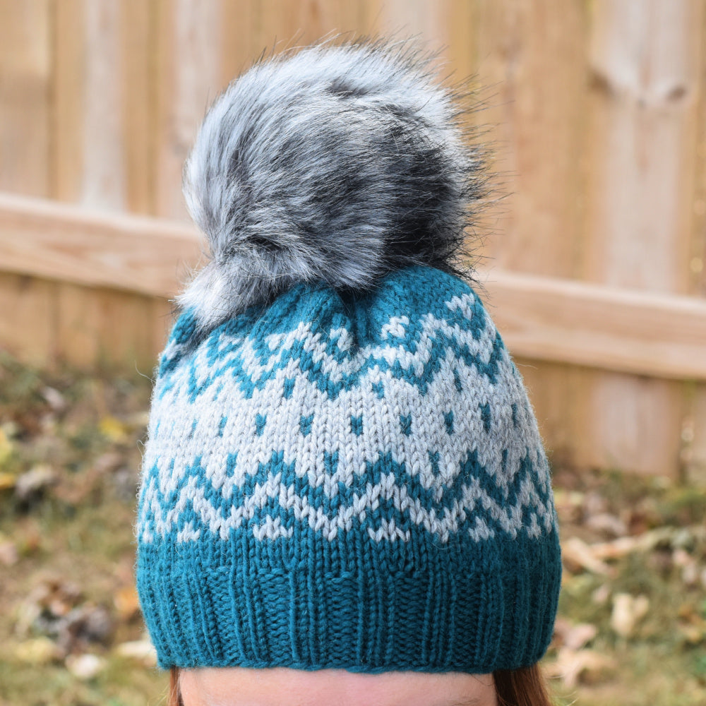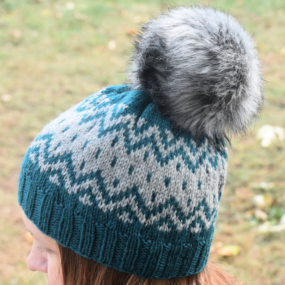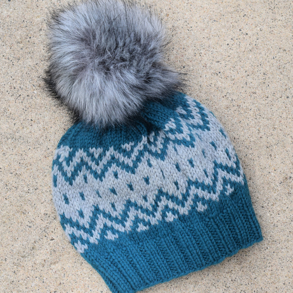 Knit in the round using worsted weight yarn, this stranded color knit can be a fun challenge for an advanced beginner or a quick weekend project for a more experienced knitter.