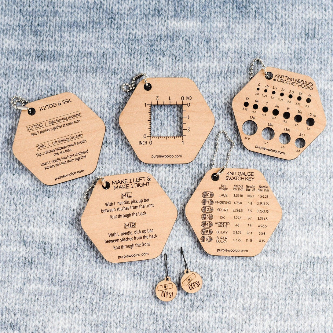 The Beginner Knitter Bundle has everything you need to start your knitting journey! It includes essential tools, handy gauges, and clear instructions to help you master the basics. Perfect for those just diving into the world of yarn and needles! Makes a great gift for the new knitter in your life!