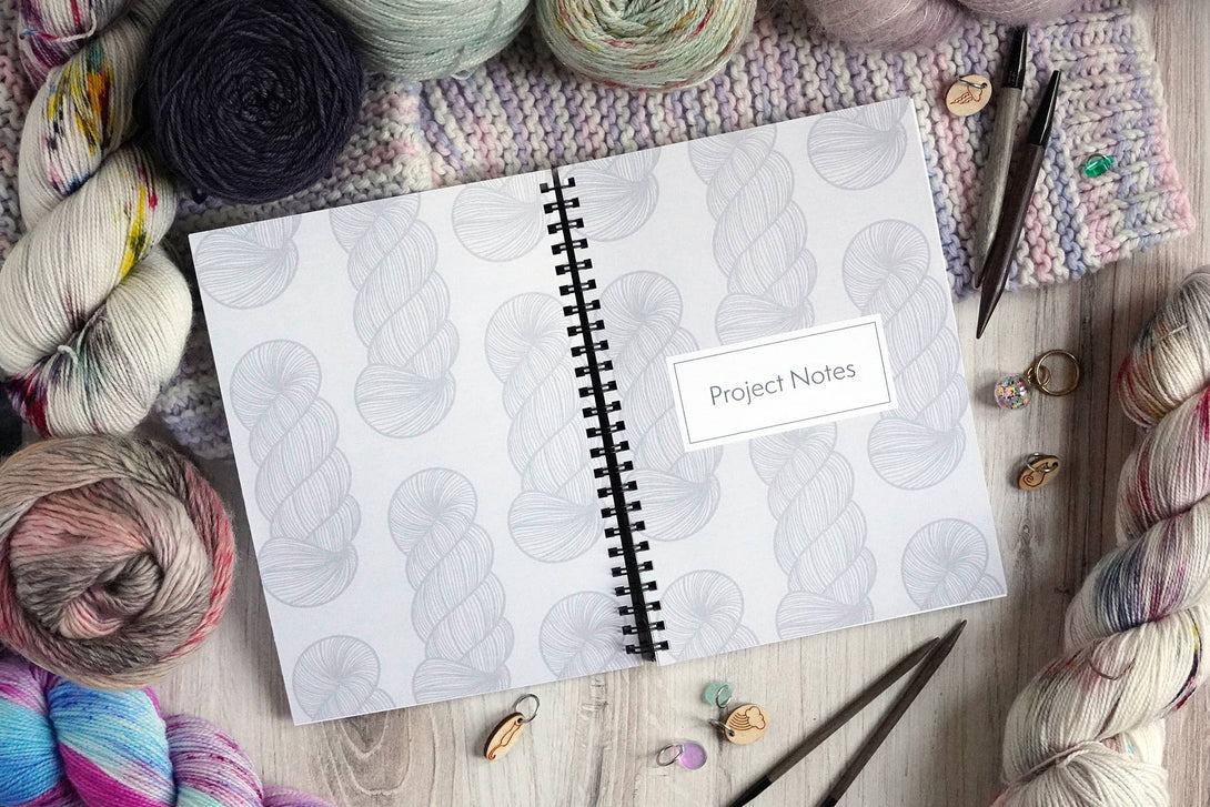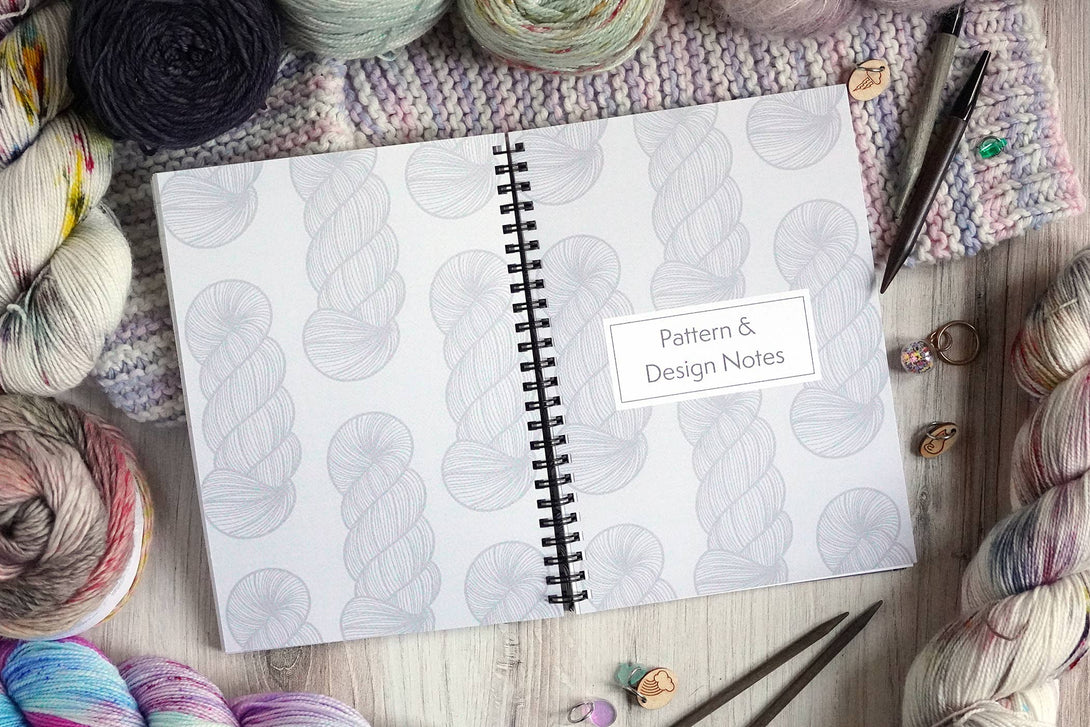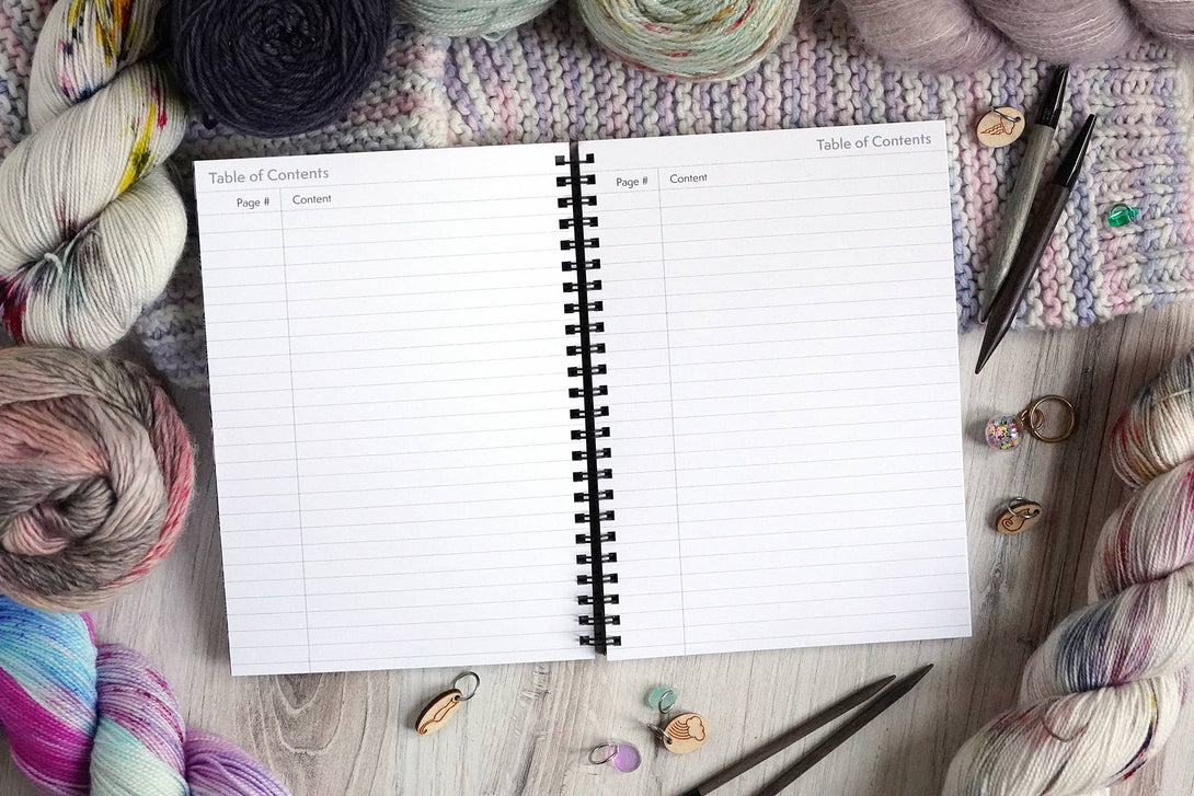 This A5 wire-o bound notebook has 120 pages that includes: - Name Plate - Index - 30 Projects with Design Pages - 28 Individual Design Pages - Numbered Pages - Yarn Swatch Notes - References and Ruler - Blank Section for Additional Notes - Inner Cover Design - 80 lb paper