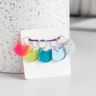 stitch marker, tape measure, tapestry needle for weaving in ends, fur pom, scissors